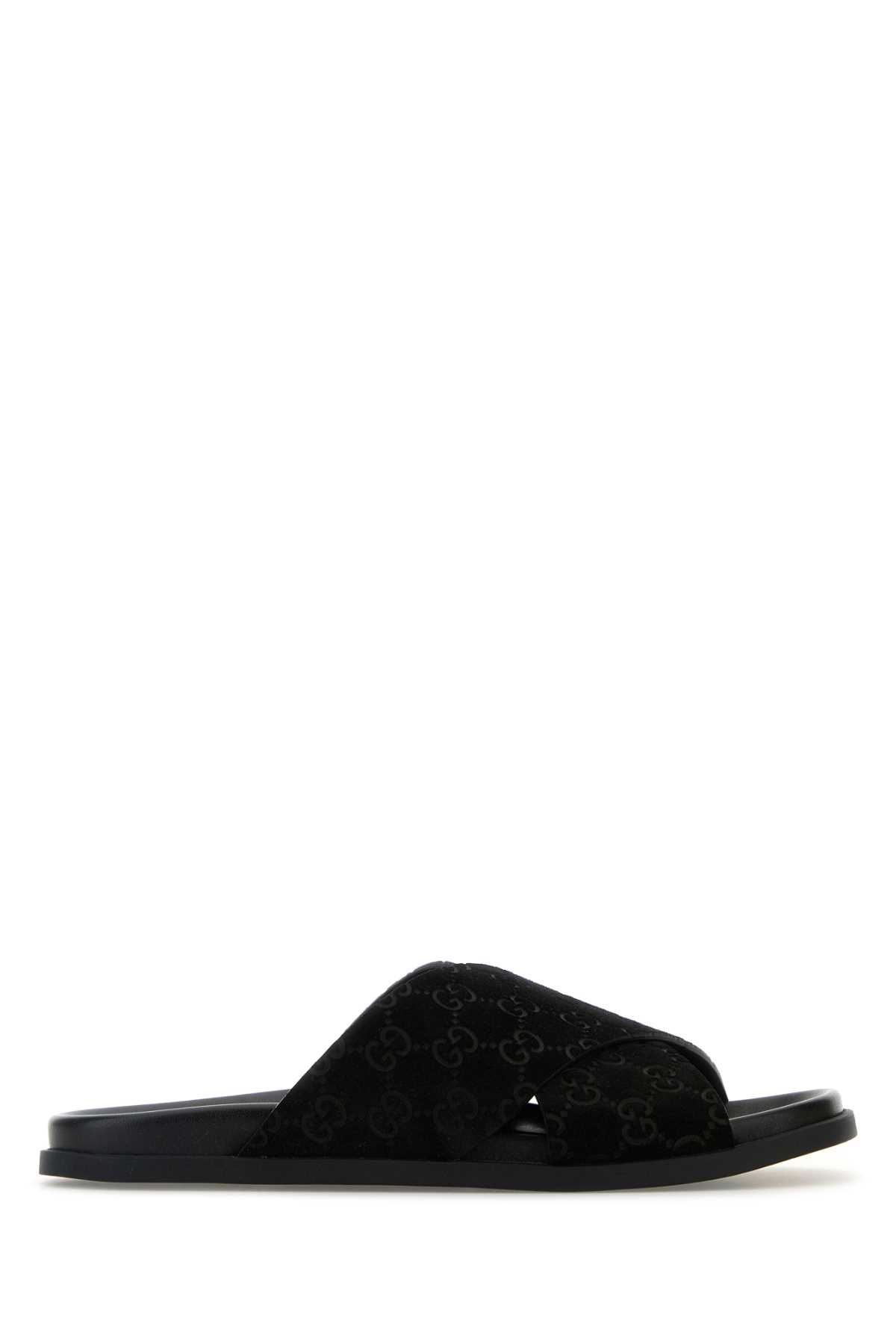GUCCI 구찌 블랙 스웨이드 남성 슬리퍼 834940AADUO 1000