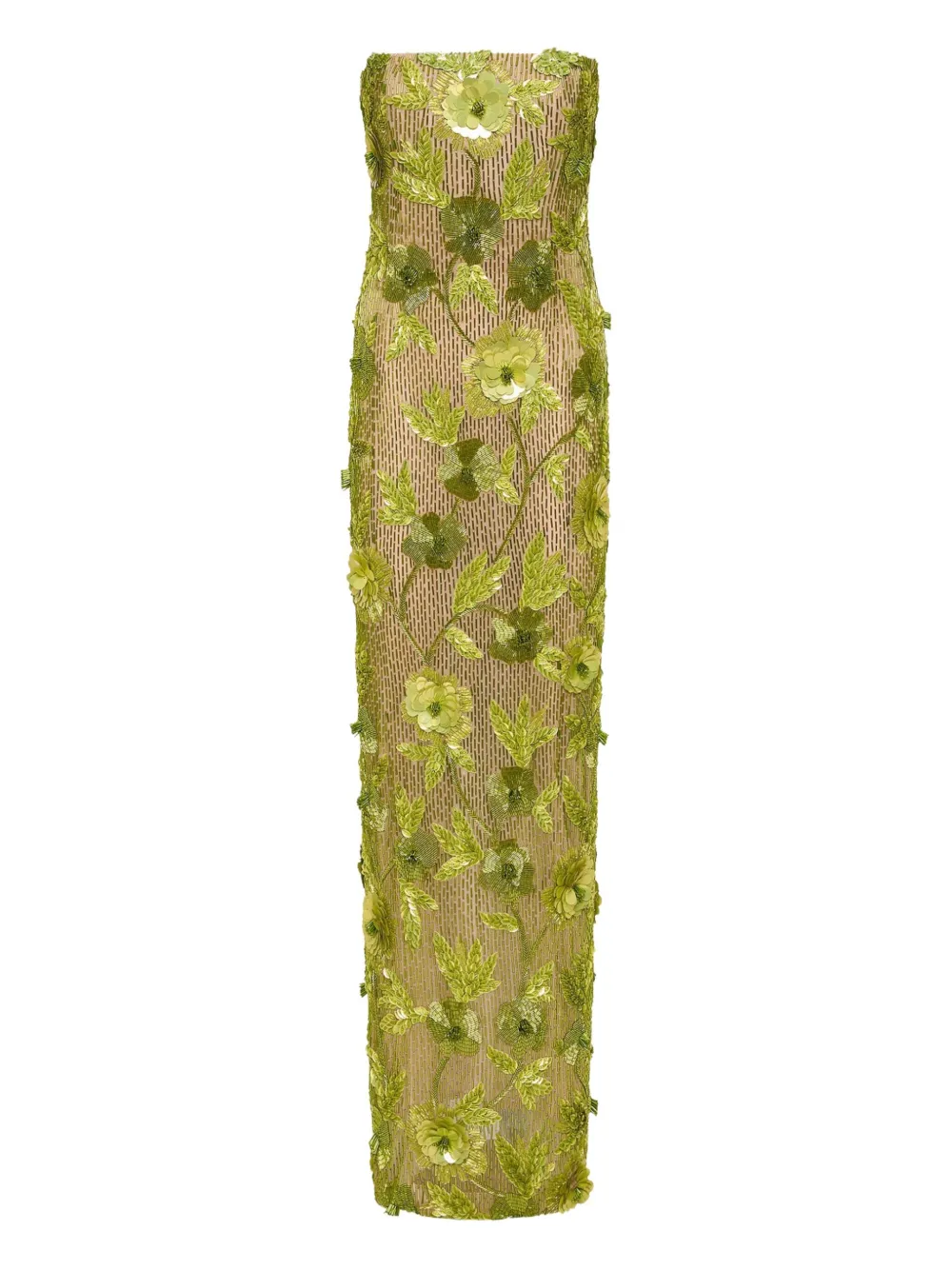 Rachel Gilbert 피에르 플로럴 장식 스트랩리스 이브닝 드레스 그린 25SSRG62200CIT