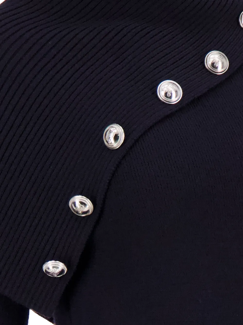 Rabanne 버튼 장식 카울넥 드레스 블루 25AMRO165ML0285
