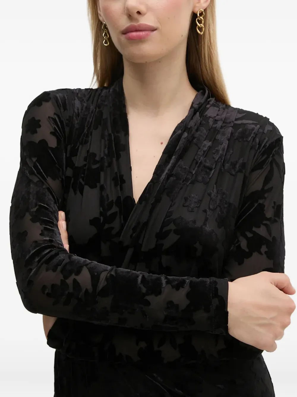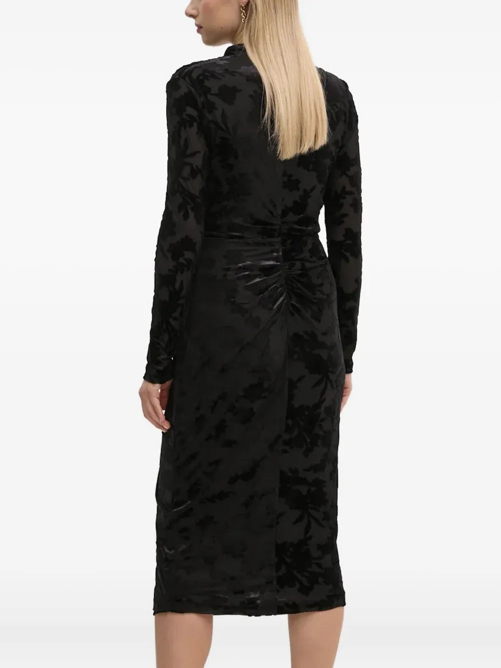 DVFDW3S011 DVF Diane von Furstenberg 플로럴 긴소매 미디 드레스 블랙 DVFDW3S011