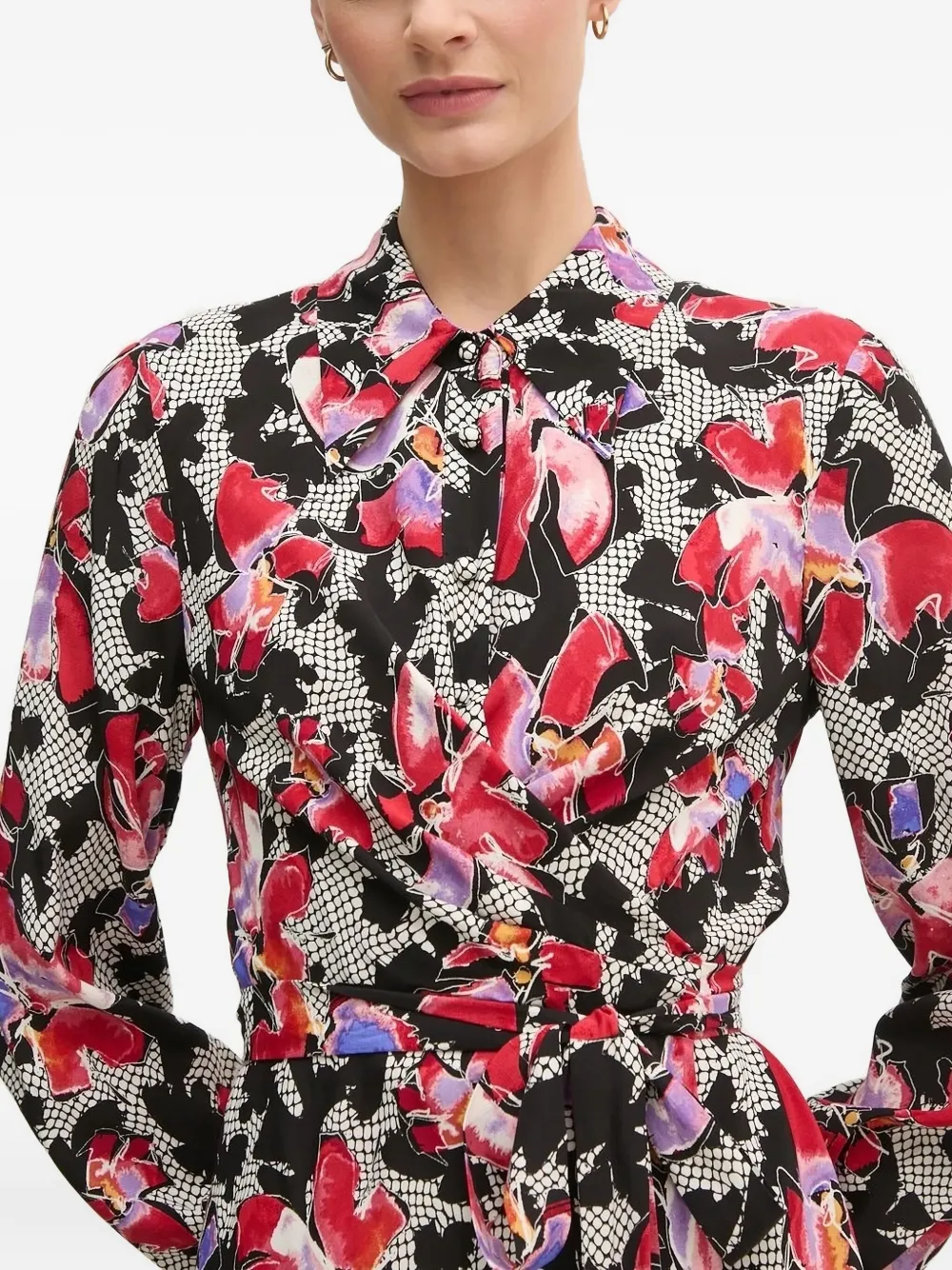 DVFDW4S015 DVF Diane von Furstenberg DVF Diane von Furstenberg 플로럴 프린트 벨트 미디 드레스 블랙 DVFDW4S015