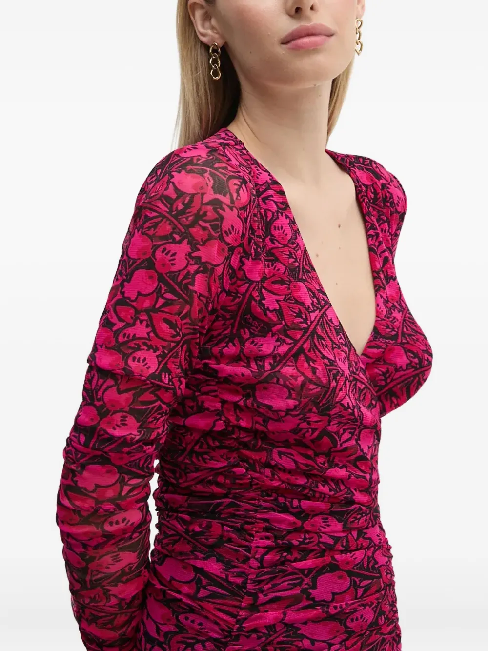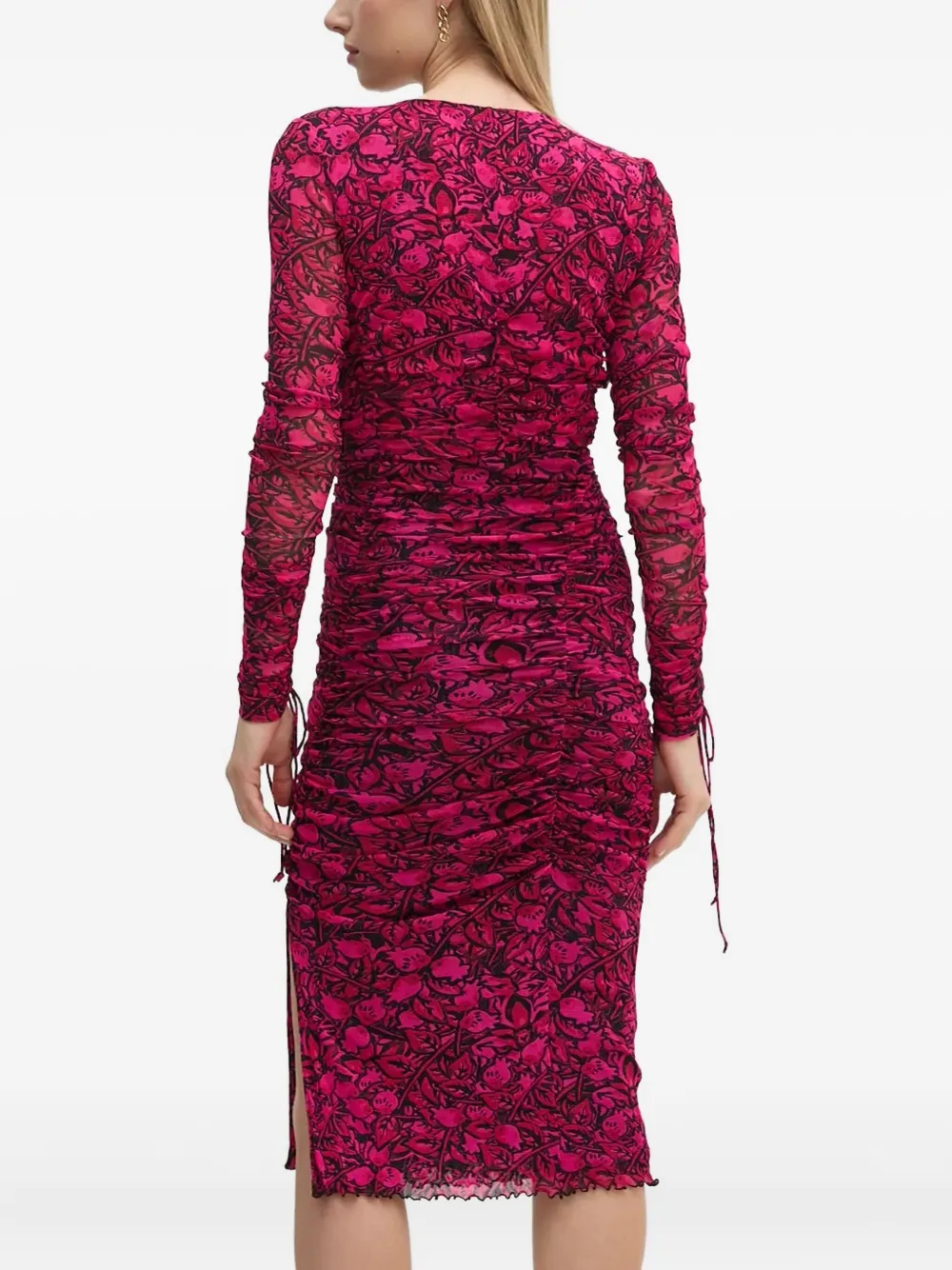 DVFDL3S004 DVF Diane von Furstenberg 플로럴 주름 미디 드레스 핑크 DVFDL3S004