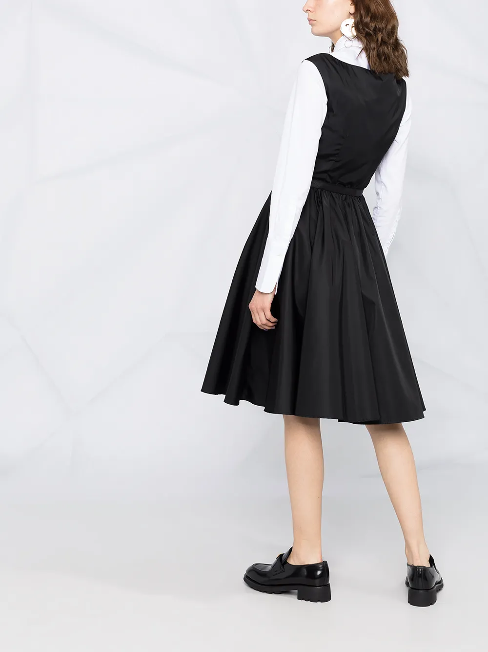 23X634S2021WQ8 Prada 로고 장식 벨트 플레어 드레스 블랙 23X634S2021WQ8