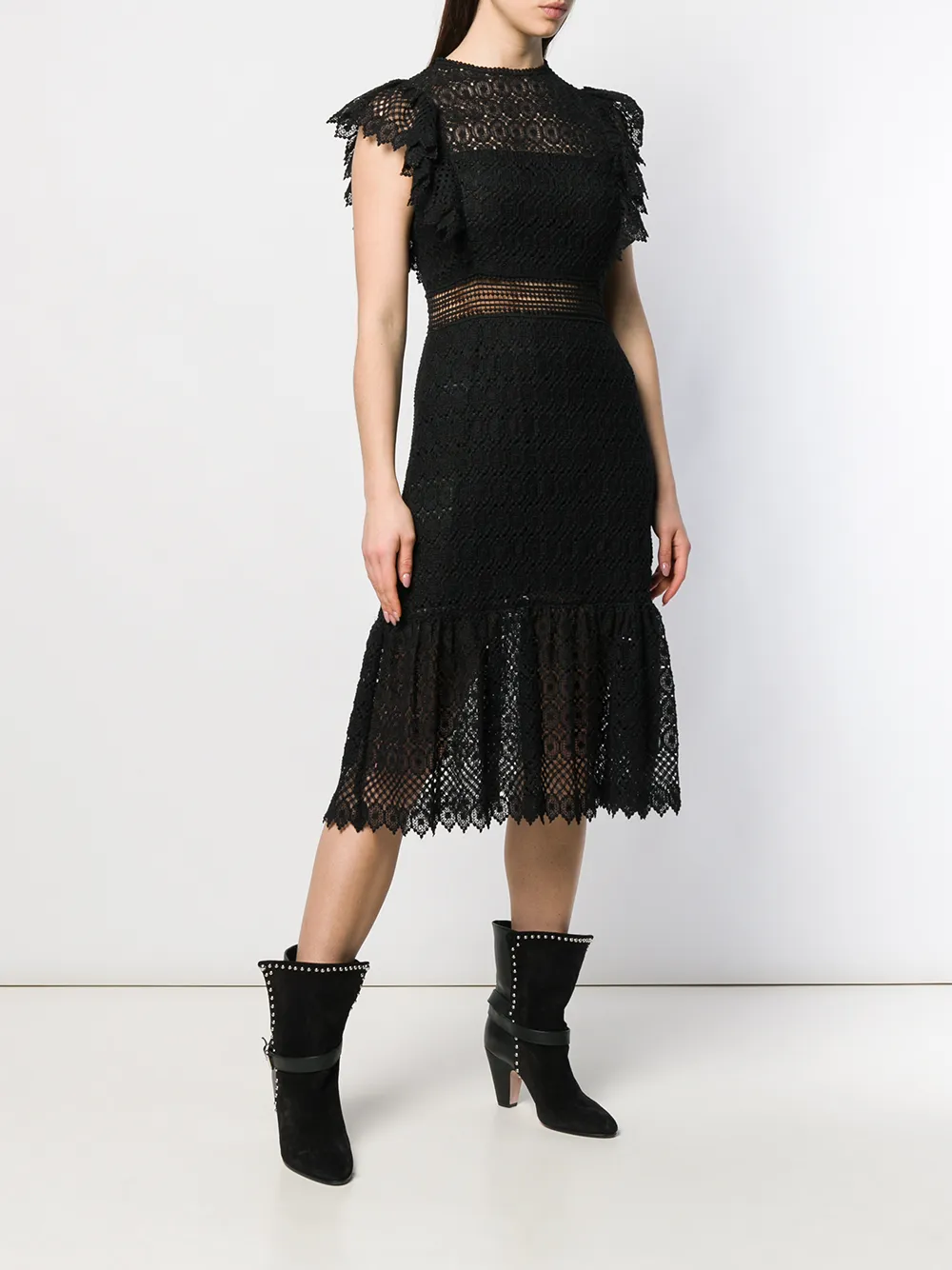 Philosophy Di Lorenzo Serafini 레이스 반소매 드레스 블랙 A0431727