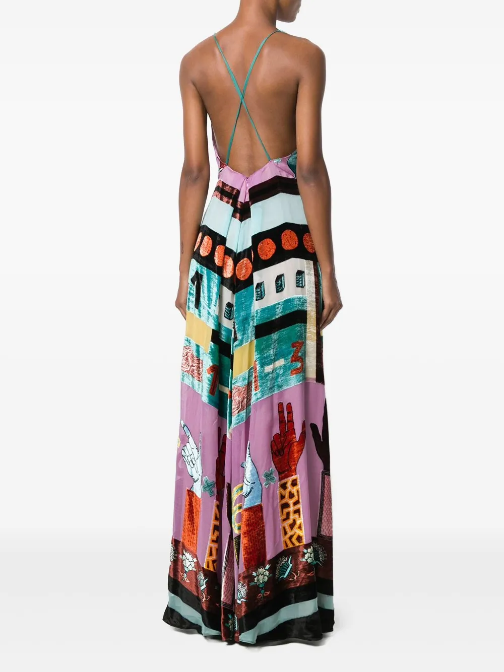 Valentino Garavani Counting 벨벳 앤 시폰 이브닝 드레스 핑크 NB0VD6Q53LS