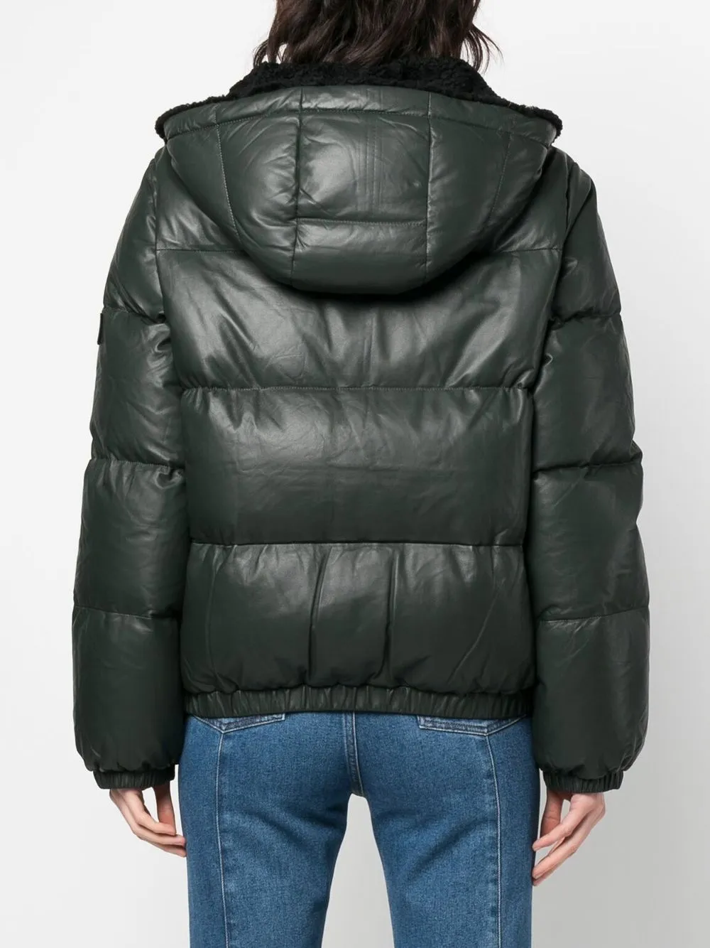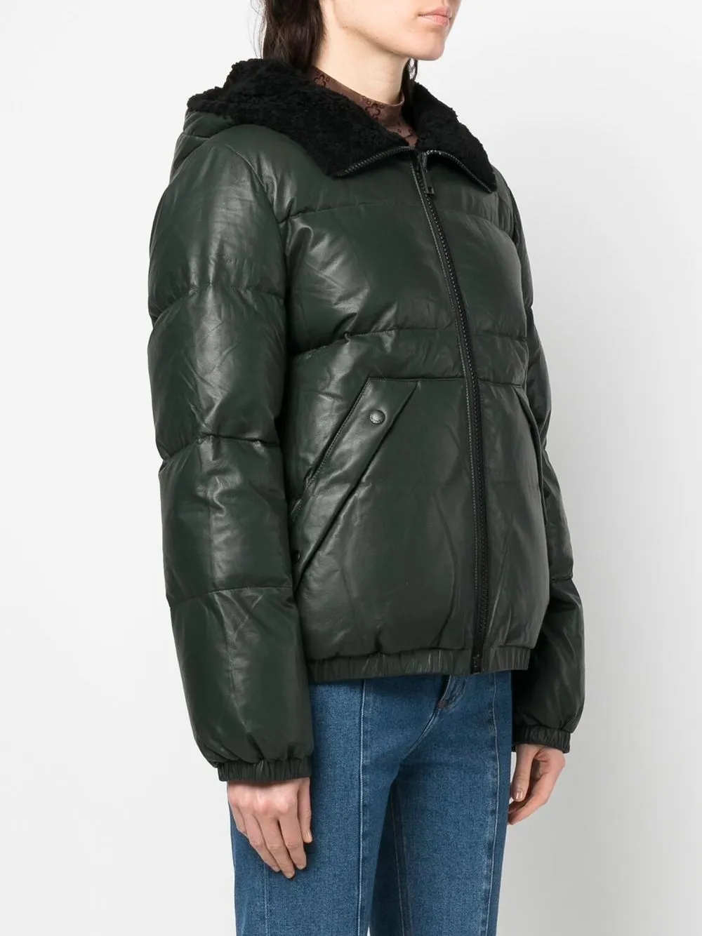 Yves Salomon Yves Salomon 시어링 트리밍 가죽 다운 재킷 그린 23WFV06160M04W