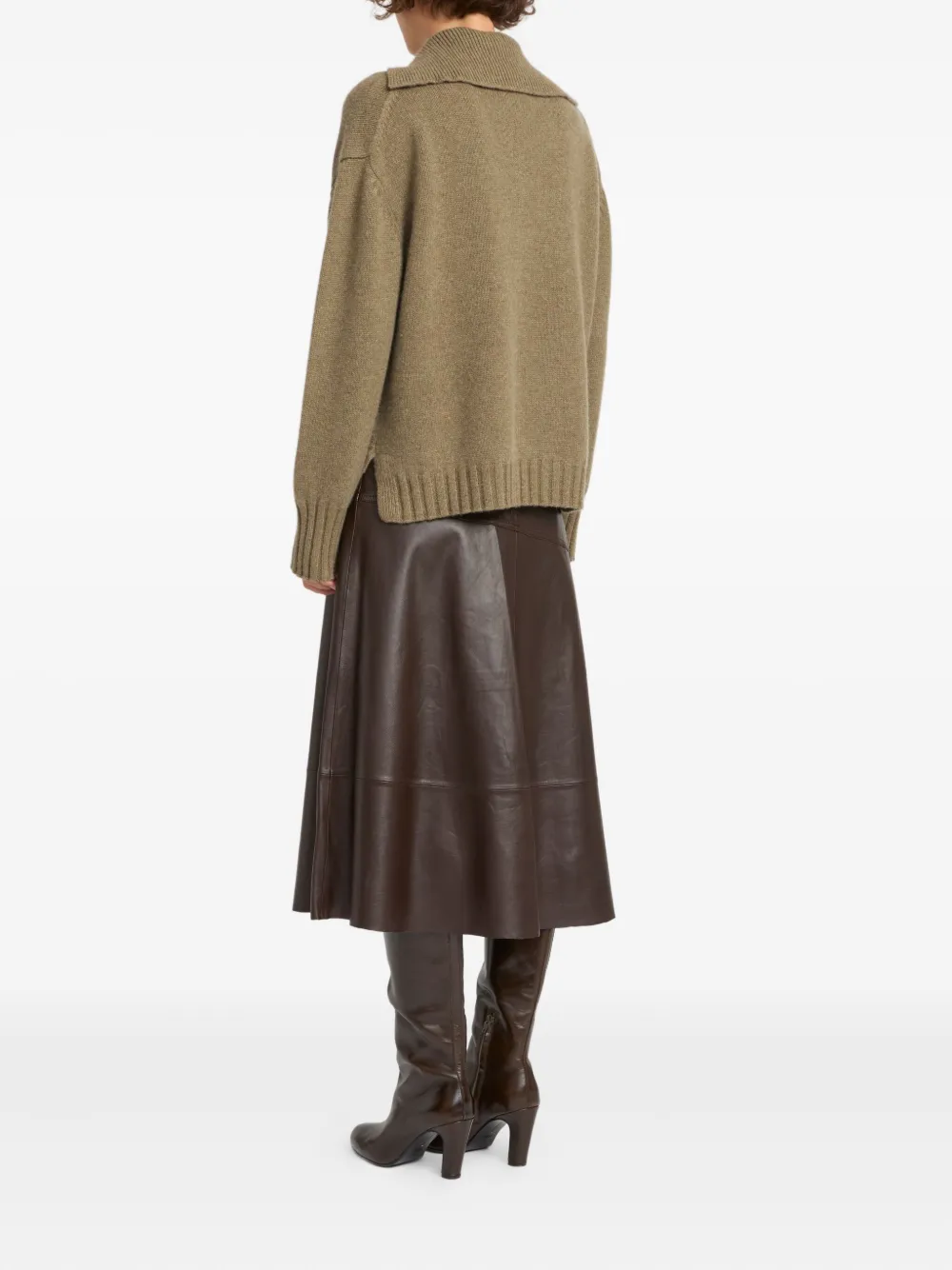 Yves Salomon 플레어 레더 미디 스커트 브라운 26WYJ20475APXX