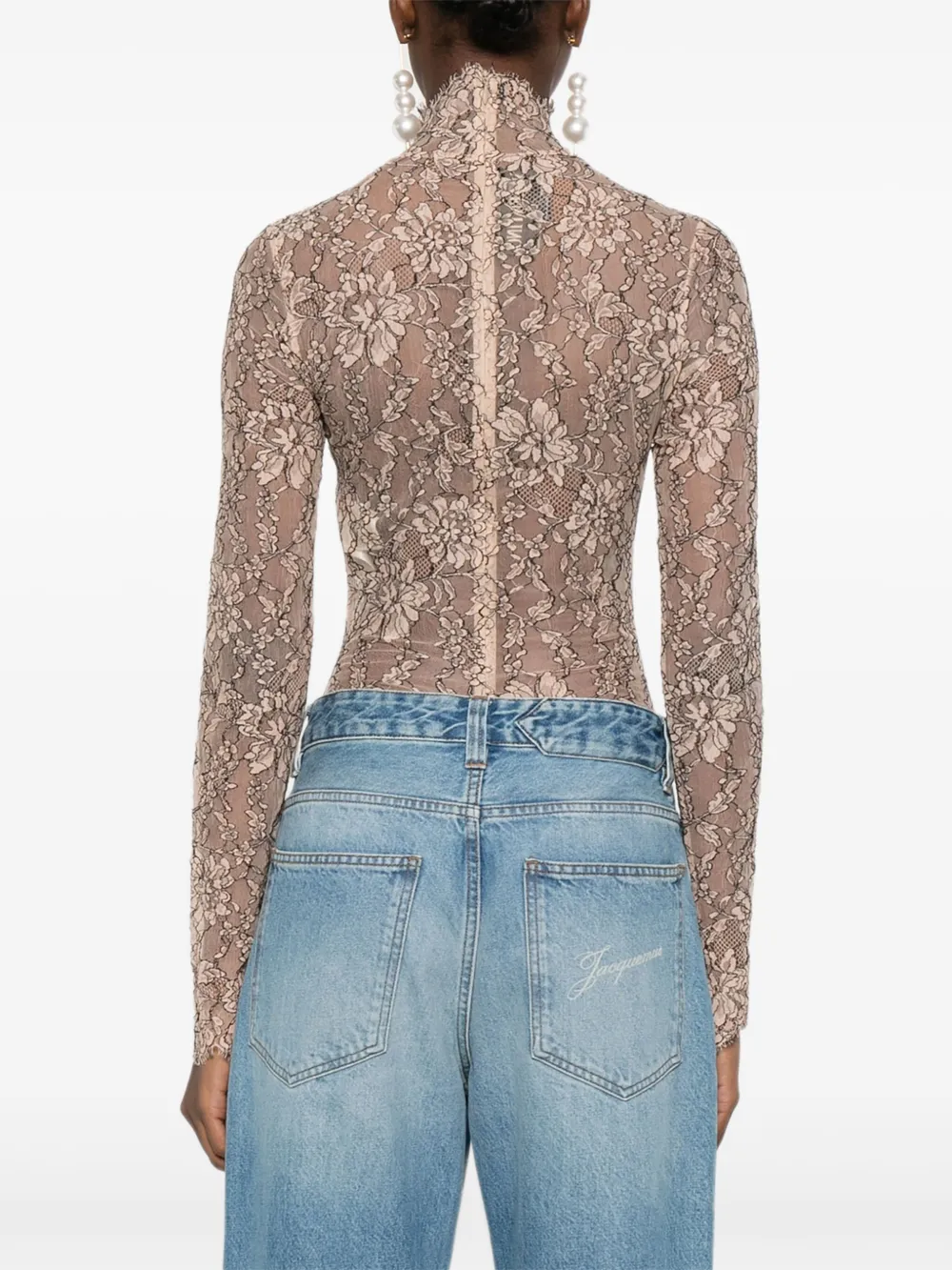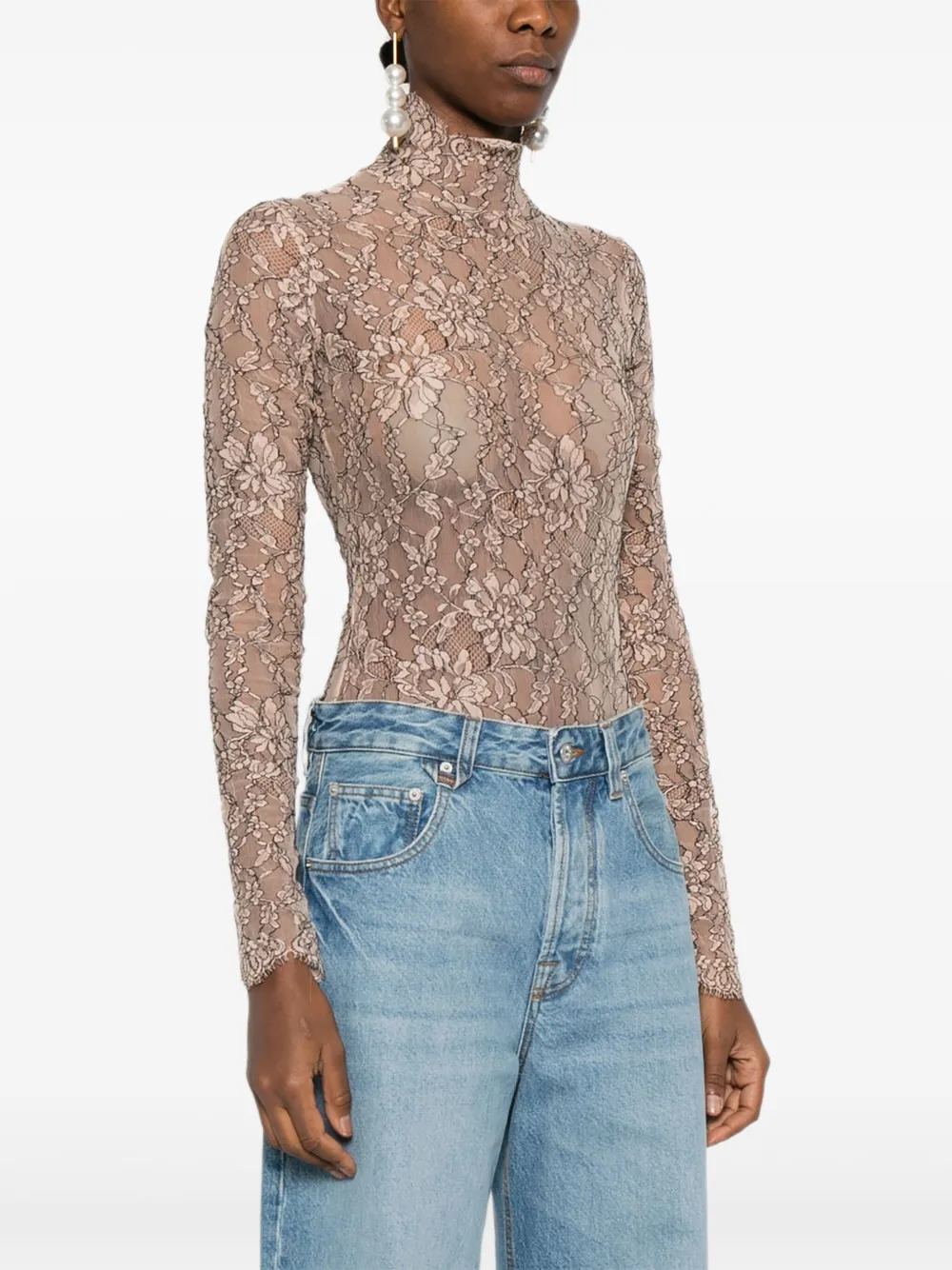 Valentino Garavani 플로럴 레이스 하이 넥 바디수트 뉴트럴 BMR01Y9TR
