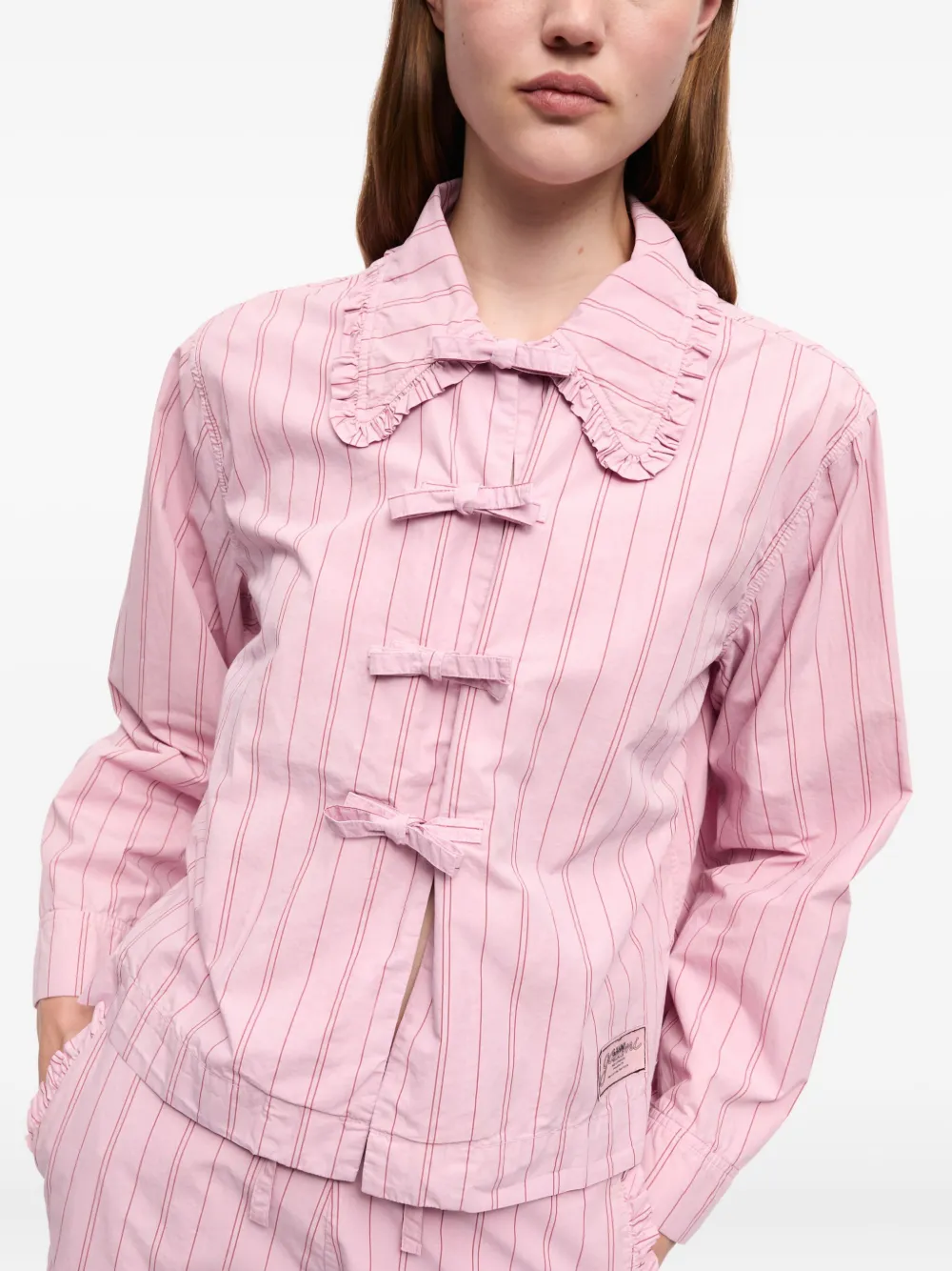 GANNI 스트라이프 코튼 블라우스 핑크 W0326