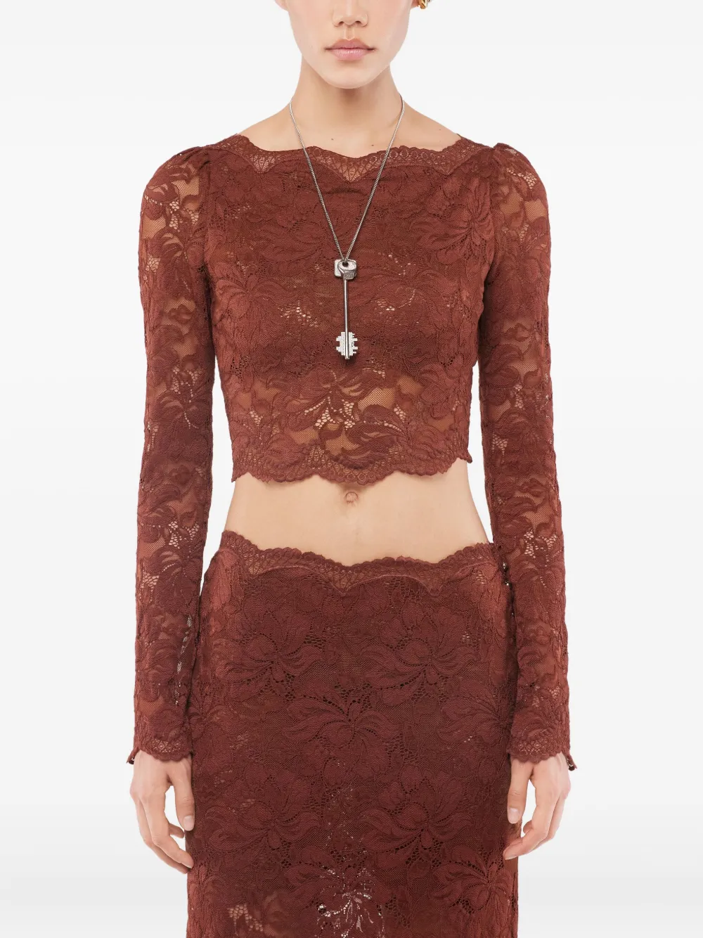 Rabanne 보트 네크라인 긴소매 탑 브라운 25HJTO845PA0170