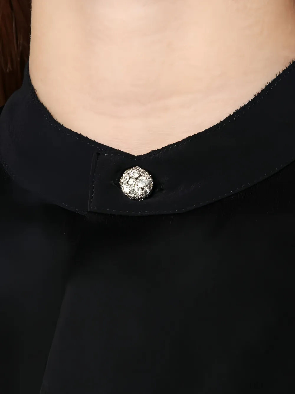 1325WSH006457AVI Victoria Beckham 크리스털 버튼 새틴 패널 셔츠 블랙 1325WSH006457AVI