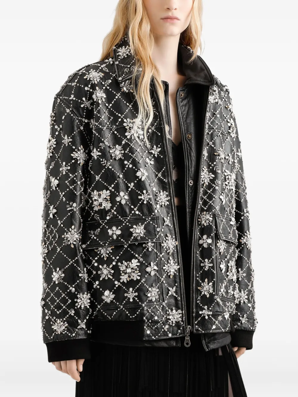 F9T91ZGDDGB Dolce & Gabbana 장식 퀼팅 레더 코트 블랙 F9T91ZGDDGB