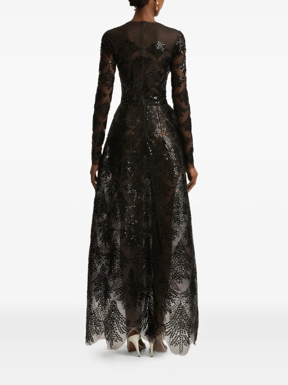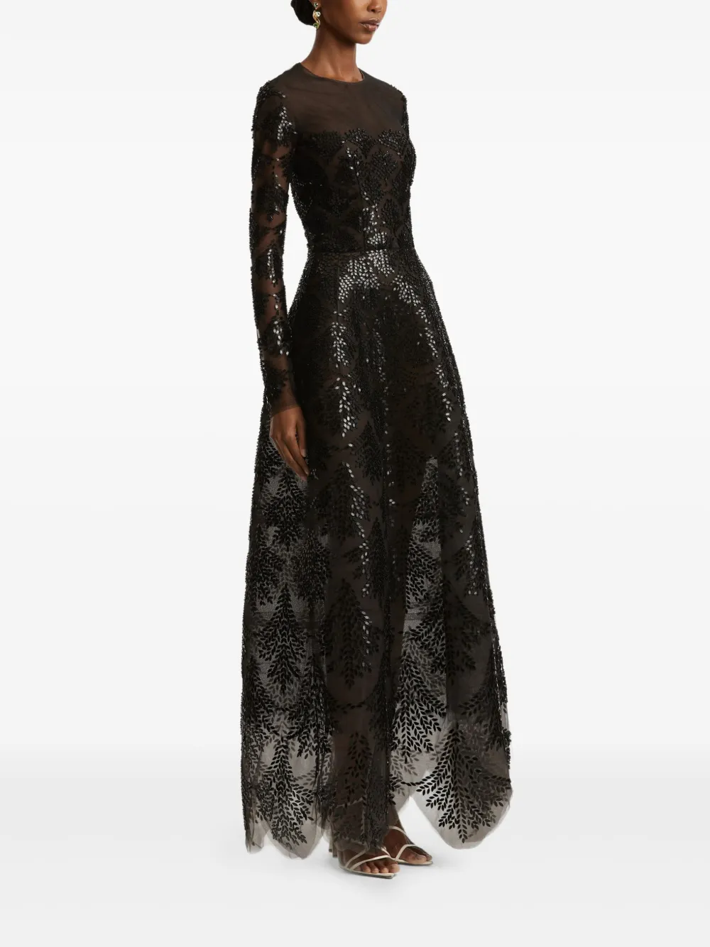 25FE031TULBLK Oscar de la Renta 시퀸 자수 이브닝 드레스 블랙 25FE031TULBLK