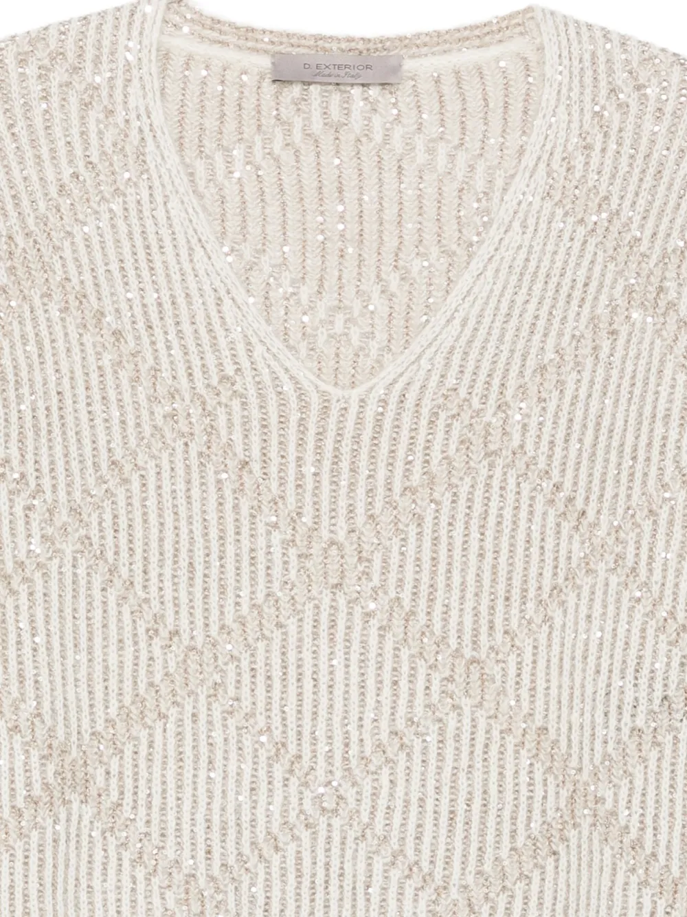 D.Exterior 시퀸 장식 V넥 스웨터 뉴트럴 612827GESS