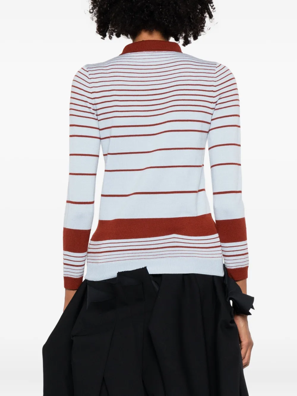 MWDETO29EAK051 SHUSHU/TONG 스트라이프 파인 니트 폴로 탑 블루 MWDETO29EAK051