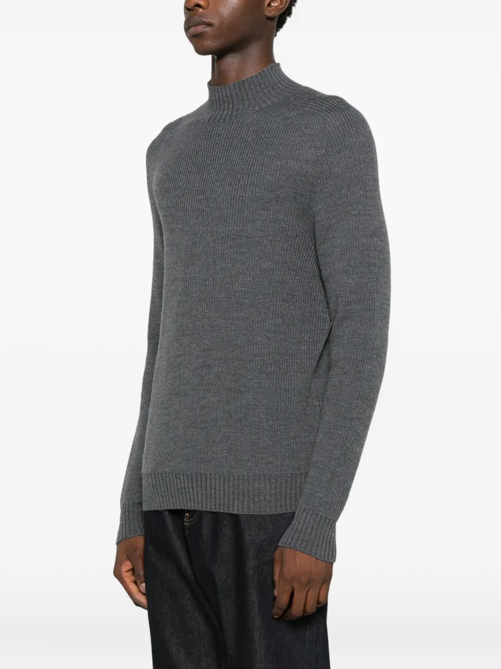 AMARANTO 골지 하이 넥 스웨터 그레이 B9F0042