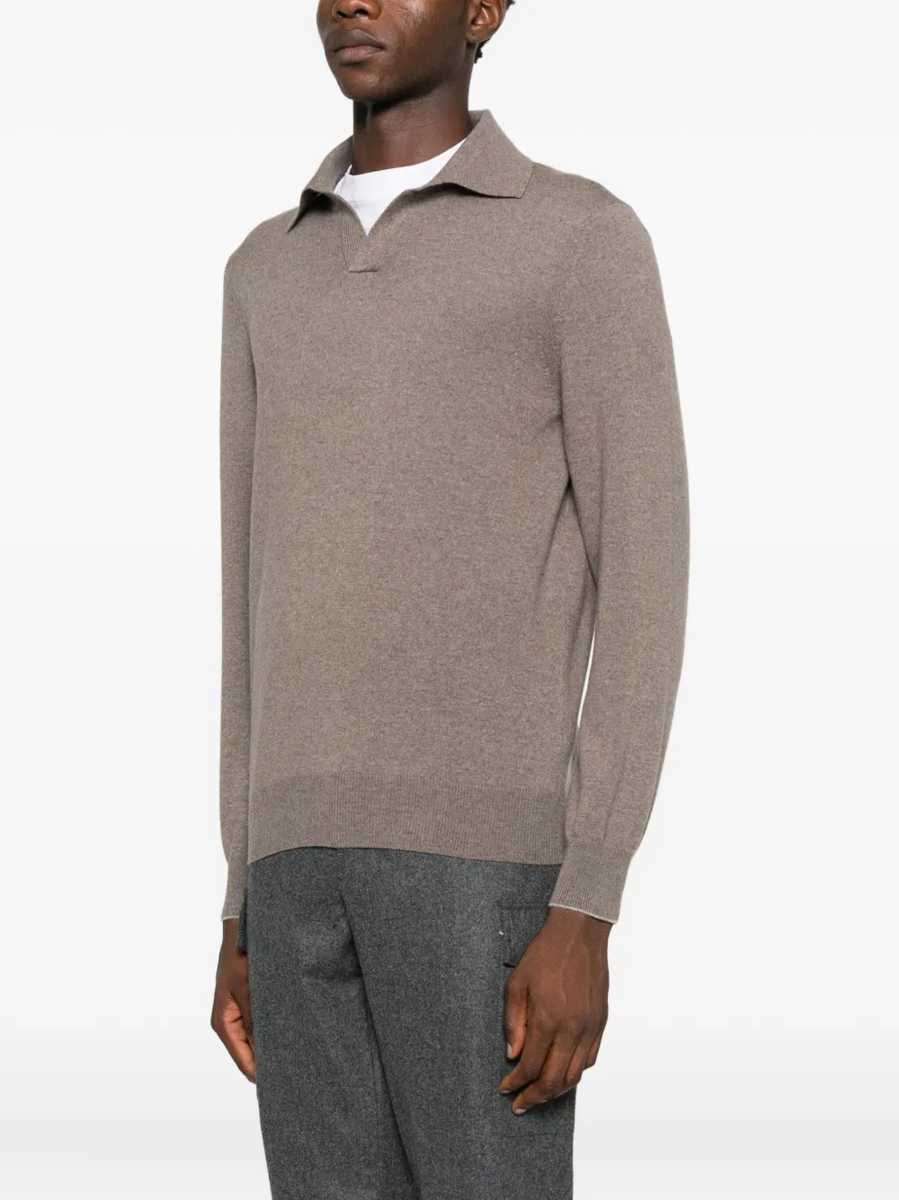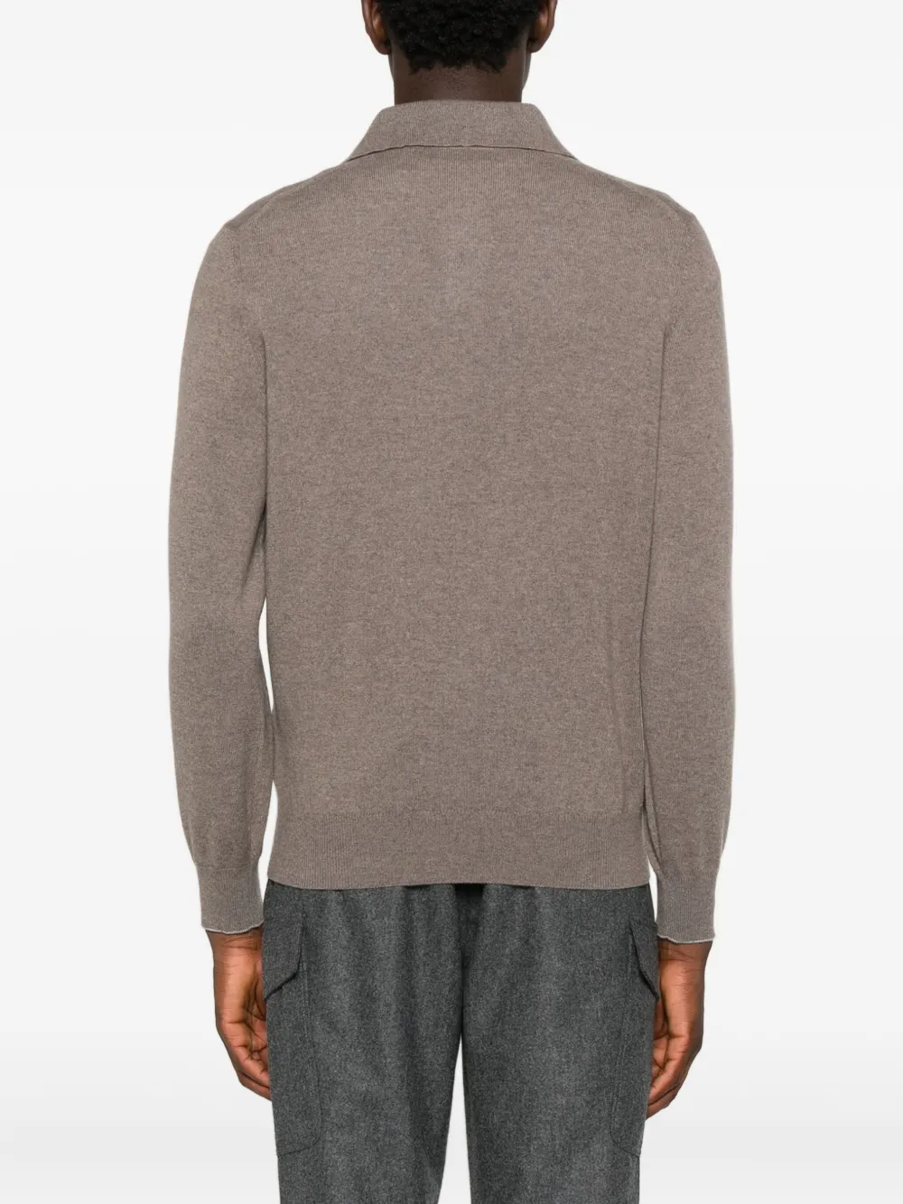 Brunello Cucinelli V넥 긴소매 폴로 스웨터 브라운 M22203805CP849