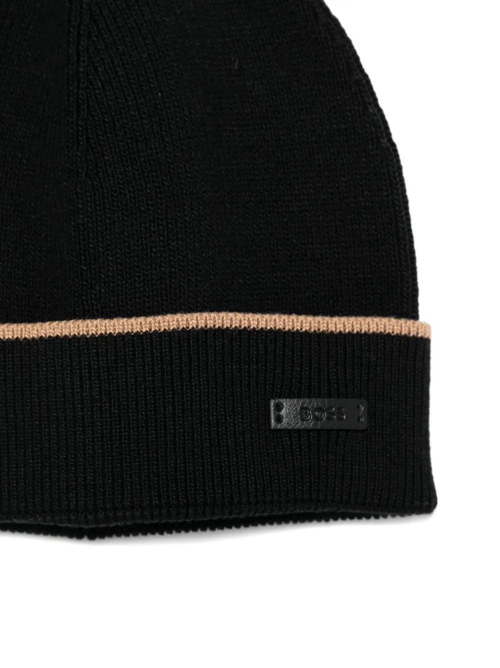 BOSS 스트라이프 프린지 스카프 비니 세트 블랙 50551072