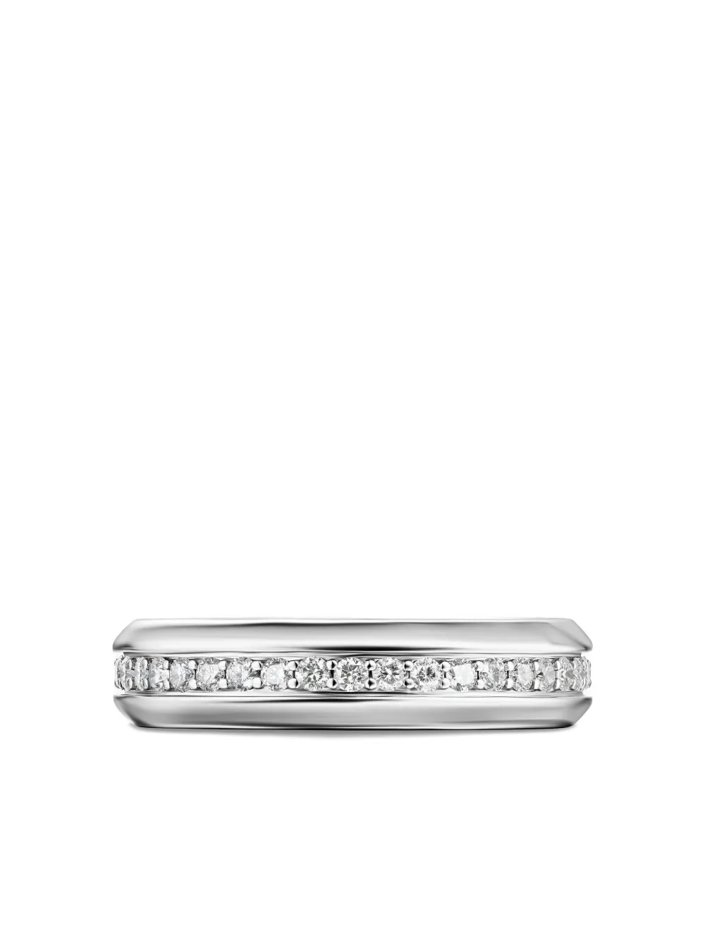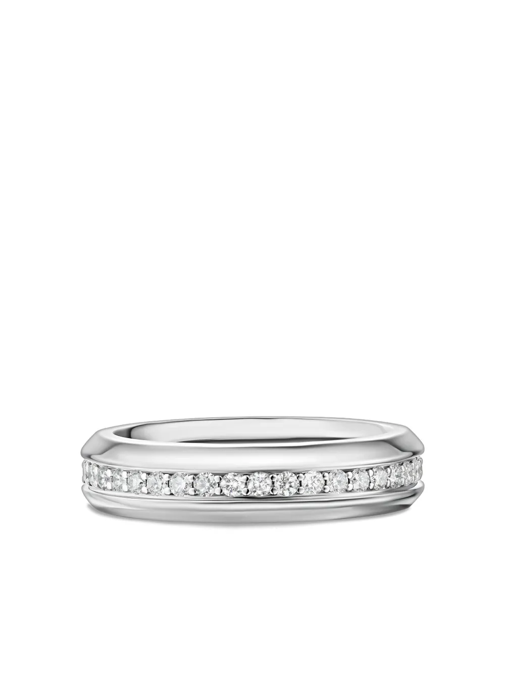 R25125M8WADI David Yurman 스트림라인 18K 화이트 골드 다이아몬드 링 6mm 실버 톤 R25125M8WADI