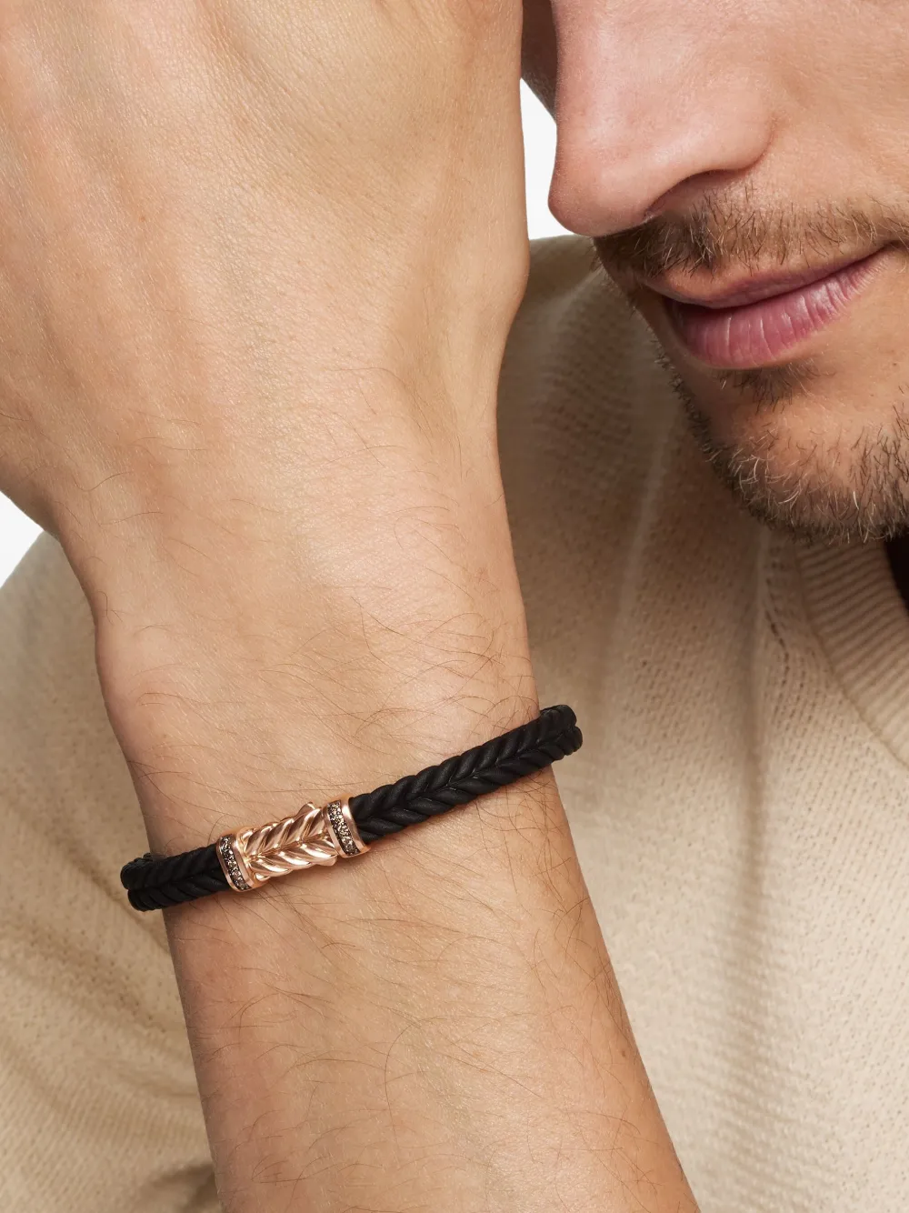 B25569M8RACDRBRBK David Yurman 셰브런 18K 로즈 골드 브레이슬릿 6mm 블랙 B25569M8RACDRBRBK