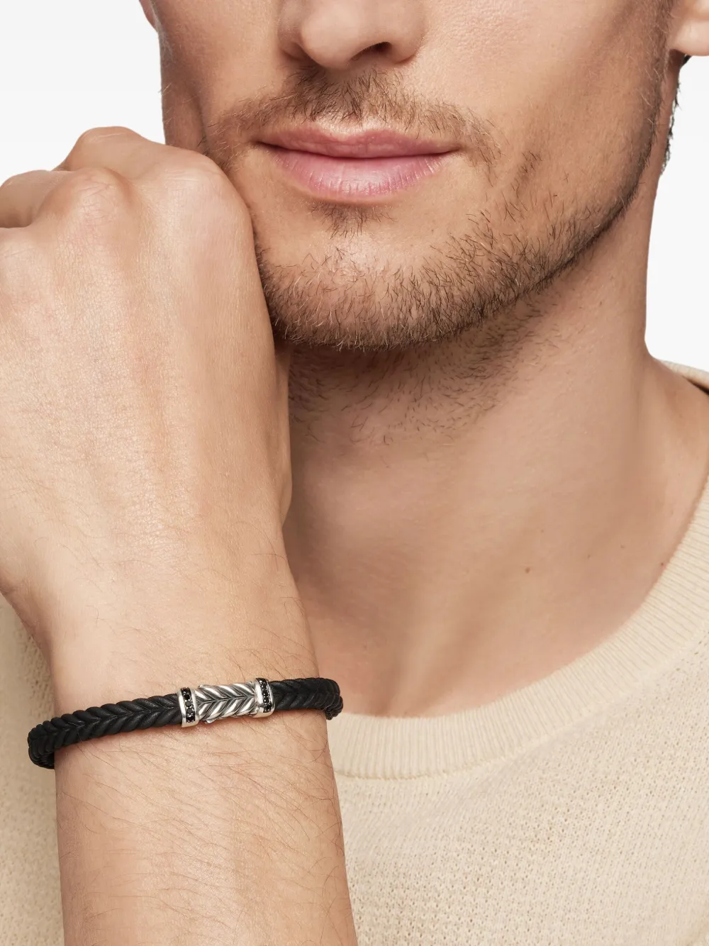David Yurman 셰브런 스털링 실버 브레이디드 브레이슬릿 6mm 실버 톤 B25569MSSABDRBRBK