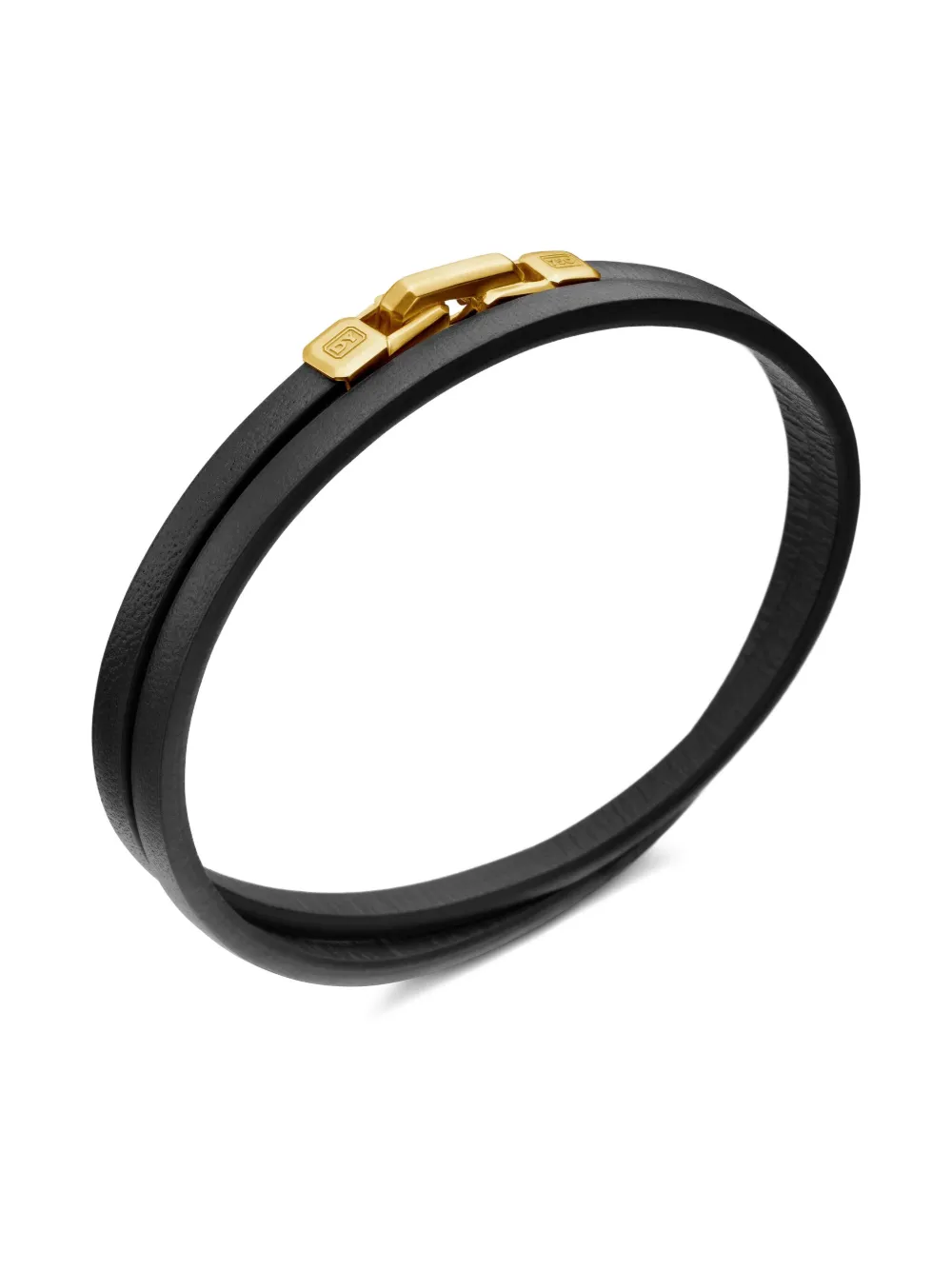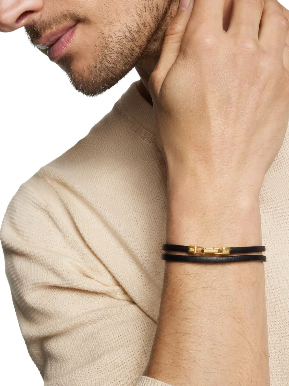 David Yurman 스트림라인 더블 랩 18K 옐로 골드 가죽 브레이슬릿 4mm 골드 톤 B25125M88BKLE
