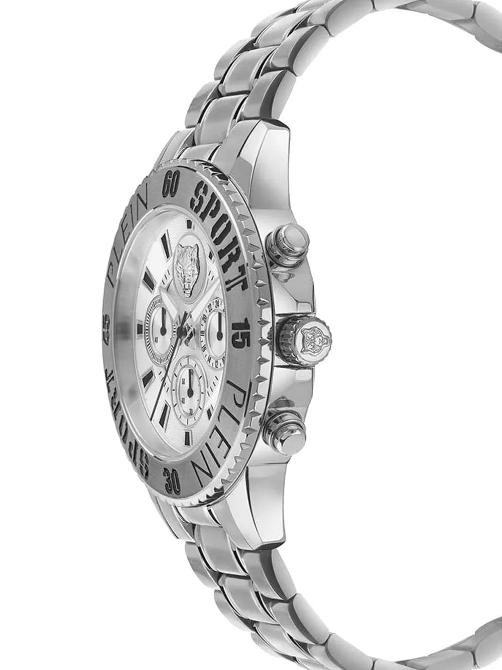 PSMEA0424 Plein Sport 스포츠 글램 크로노 44mm 실버 톤 PSMEA0424